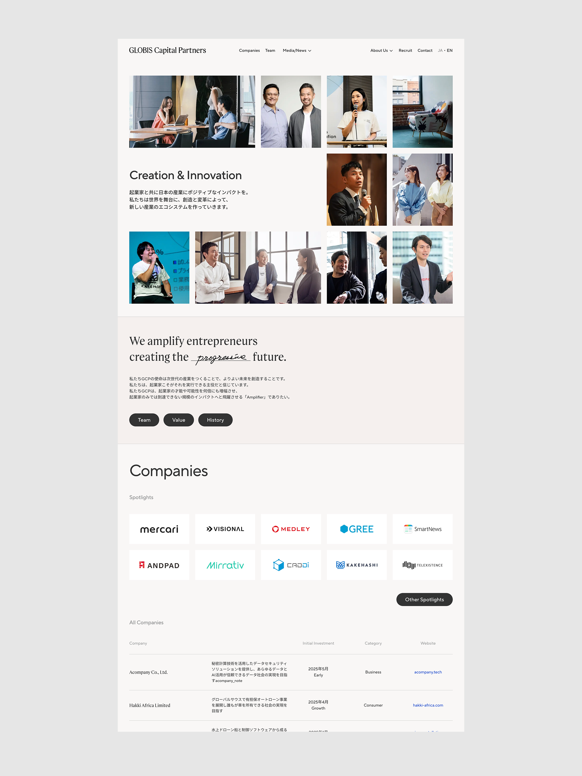 グロービス・キャピタル・パートナーズのコーポレートサイトにおいて、THE GUILDの北田がデザインと実装を担当しました。